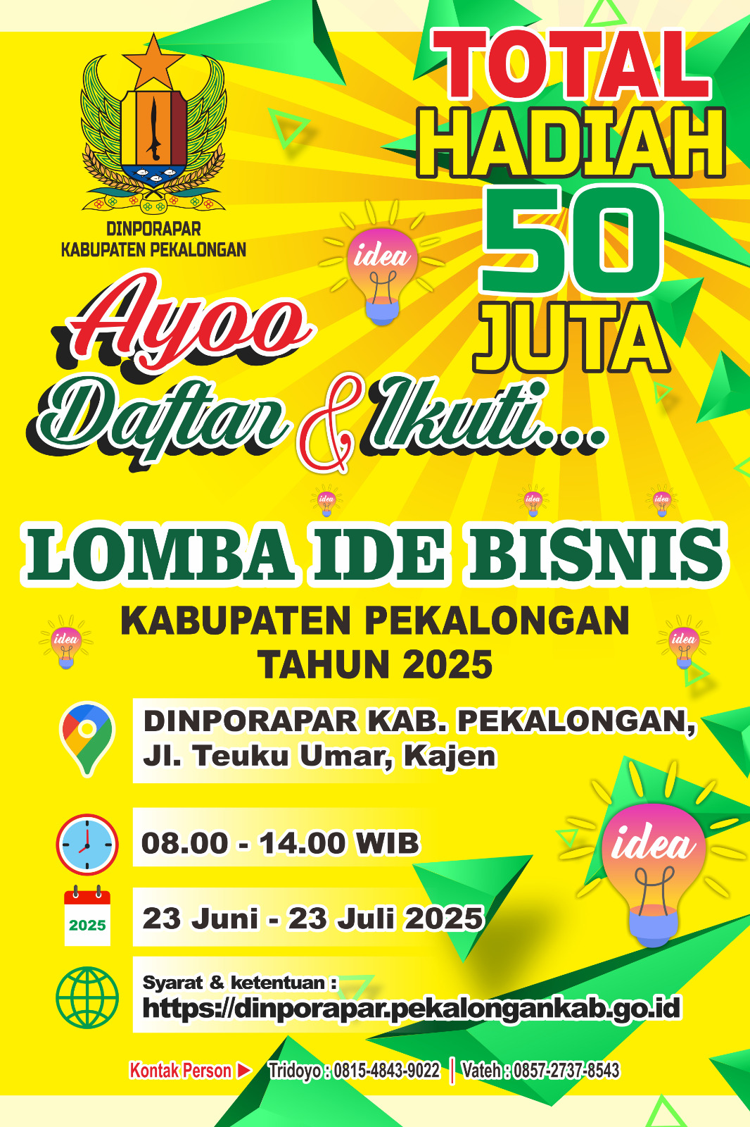 Yuk ikut lomba ide bisnis dan kreasikan segala ide bisnismu yang kreatif itu dan dapatkan hadiah hingga total 50 juta rupiah.