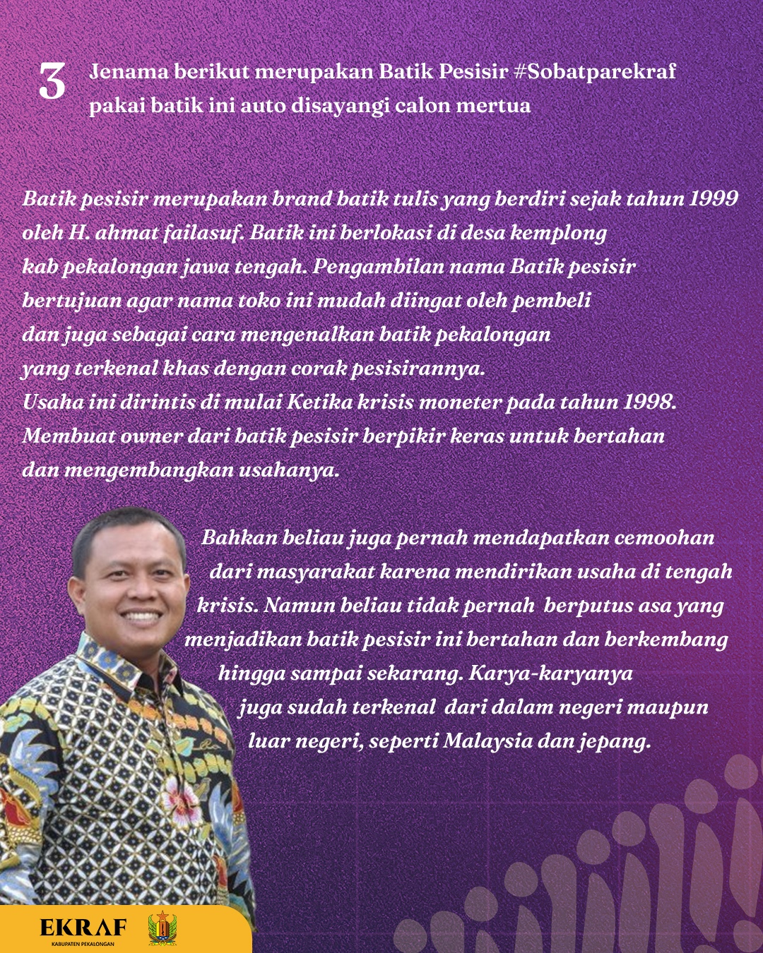 Nah,buat kalian yang mau tau info lebih lanjut tentang pelaku² ekonomi kreatif di @kab_pekalongan kalian harus pantengin terus instagram kita.